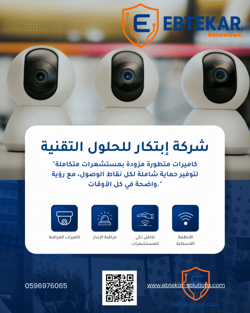 إبتكار للحلول الرقمية هي شركة متخصصة في تقديم الحلول التقنية المتكاملة تأسست عام 2010 خبرة أكثر من 15 عام بمجالات الشبكات والأنظمة الأمنية والتيار الخفيف، حيث نحرص على تزويد عملائنا بأحدث التقنيات المبتكرة التي تجمع بين الأمان والكفاءة والمرونة، ونقدم في Ebtekar باقة متنوعة من الخدمات تشمل تصميم وتنفيذ شبكات الاتصالات والإنترنت، أنظمة المراقبة والتحكم في الدخول (Access Control & CCTV)، أنظمة إدارة البصمة والحضور والانصراف، حلول مراكز البيانات والبنية التحتية للشركات، إضافة إلى الدعم الفني والاستشارات التقنية.